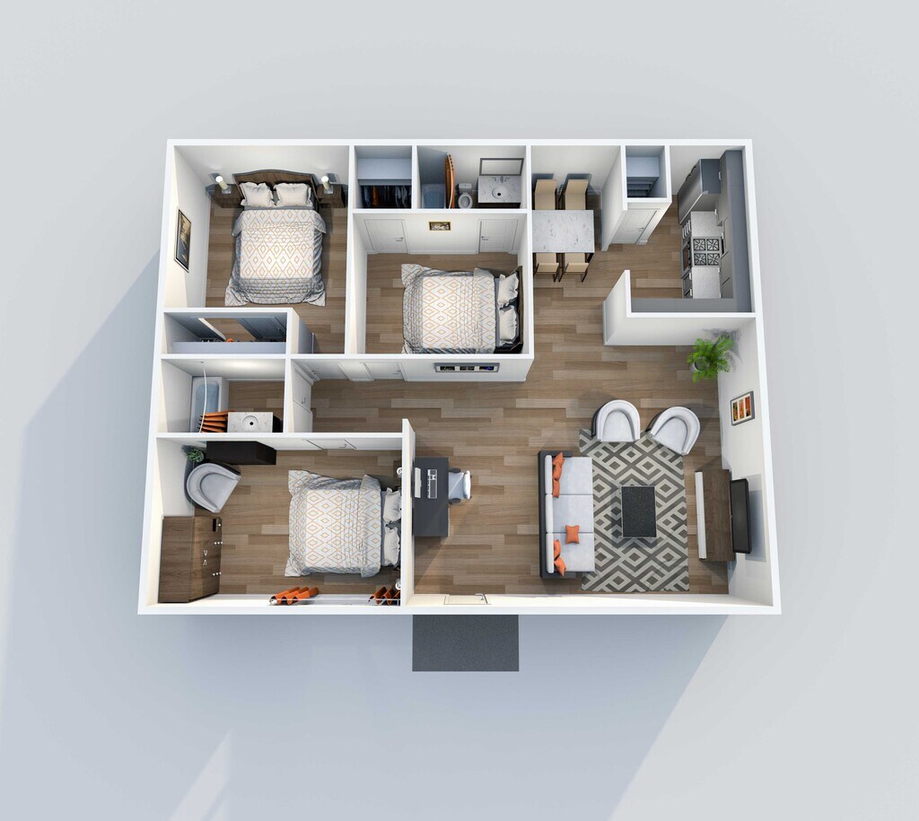 3 Dormitorios, 2 Baños, 1158 pies²Galería del Modelo