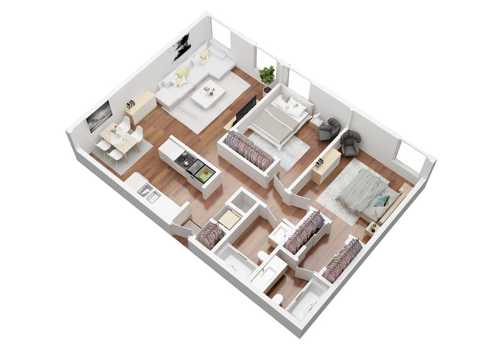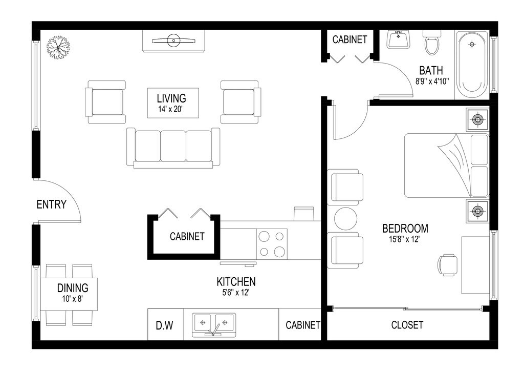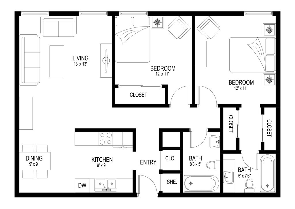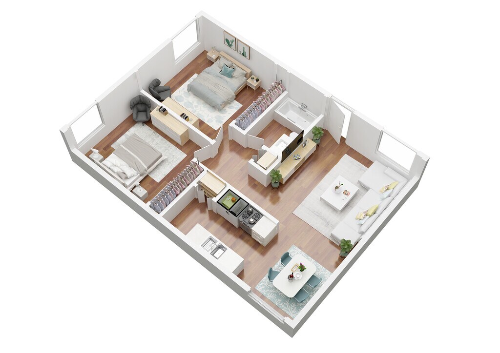 Modelo de apartamento: St.CroixLlame para Precios2 Dormitorios, 1 Baño, 780 sq ftNo Disponible![]()
