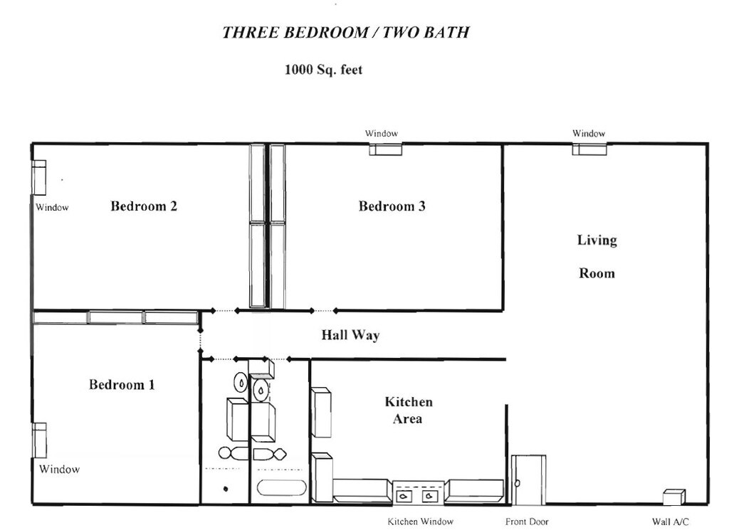 3 Dormitorios, 2 Baños, 1000 pies²Galería del Modelo