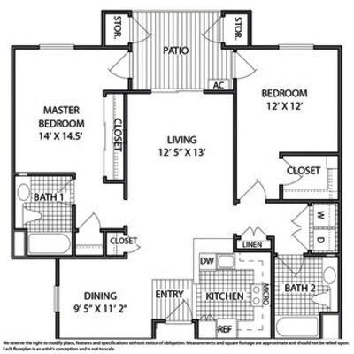Modelo de apartamento: The Amalfi BMR$2,6301 Dormitorio, 1 Baño, 845 sq ftNo Disponible![]()