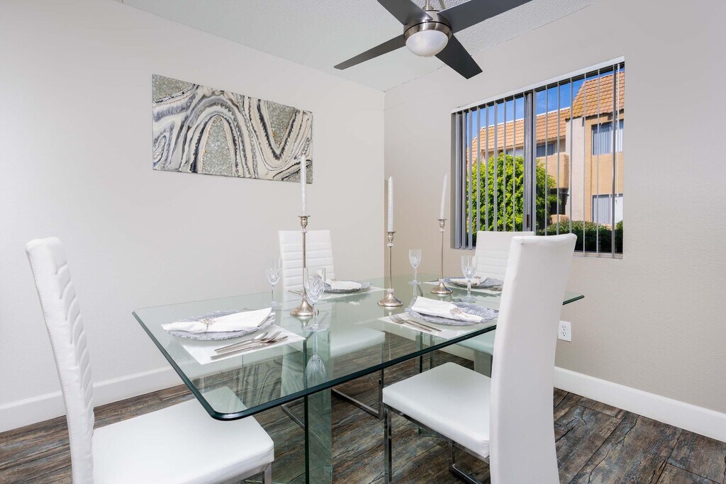 Un lugar tranquilo en una ubicación conveniente te recibe cuando llegas a Villa Del Sol Apartments. Los amplios espacios abiertos con césped y numerosas comodidades crean un ambiente tranquilo lejos del bullicio de la ciudad. En el exterior, disfrutarás de relajarte en una de nuestras tres espectaculares piscinas, o puedes relajarte después de un día ajetreado en nuestro spa. En el interior de tu apartamento, disfrutarás de un plano de planta amplio, patio o balcón grandes y mucho espacio de guardarropas. Estamos convenientemente cerca de tiendas, restaurantes, y de las autopistas 210 o 10. Ven a visitarnos a Villa Del Sol Apartments, donde nuestro personal de arrendamiento profesional te proporcionará un servicio rápido y cordial que te hará sentirte como en casa.