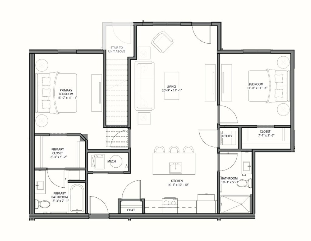 1 Dormitorio, 1 Baño, 900 pies²Disponible AhoraGalería del Modelo