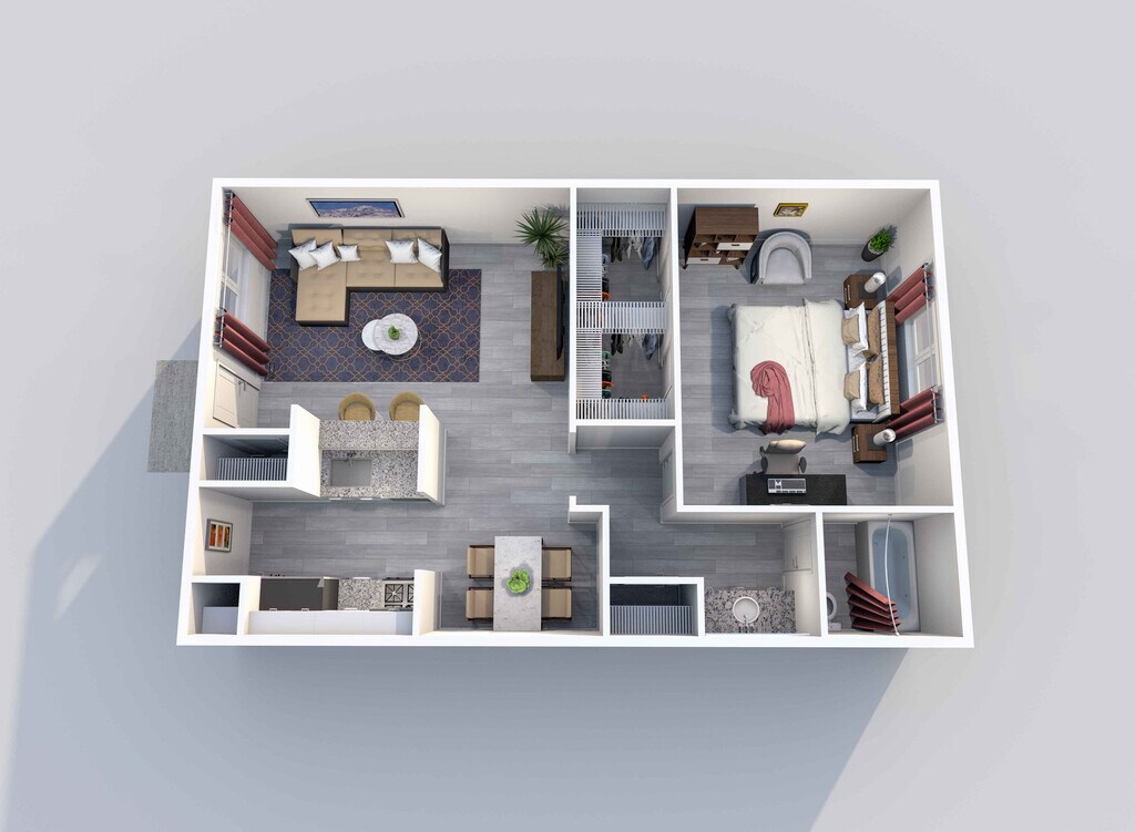 Modelo de apartamento: Dallas1 Dormitorio, 1 Baño, 615 sq ftNo Disponible![]()