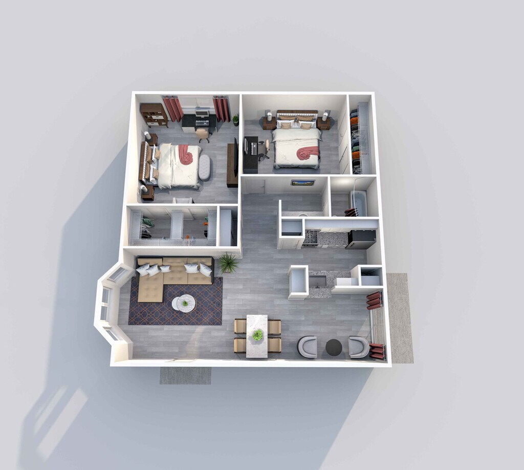 Modelo de apartamento: Bryan2 Dormitorios, 1 Baño, 936 sq ftNo Disponible![]()