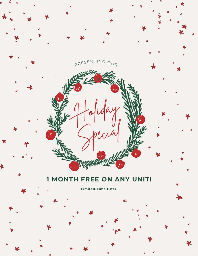 Holiday Special~~Limited-Time Holiday Special: Get 1 Month FREE on Any Unit!
