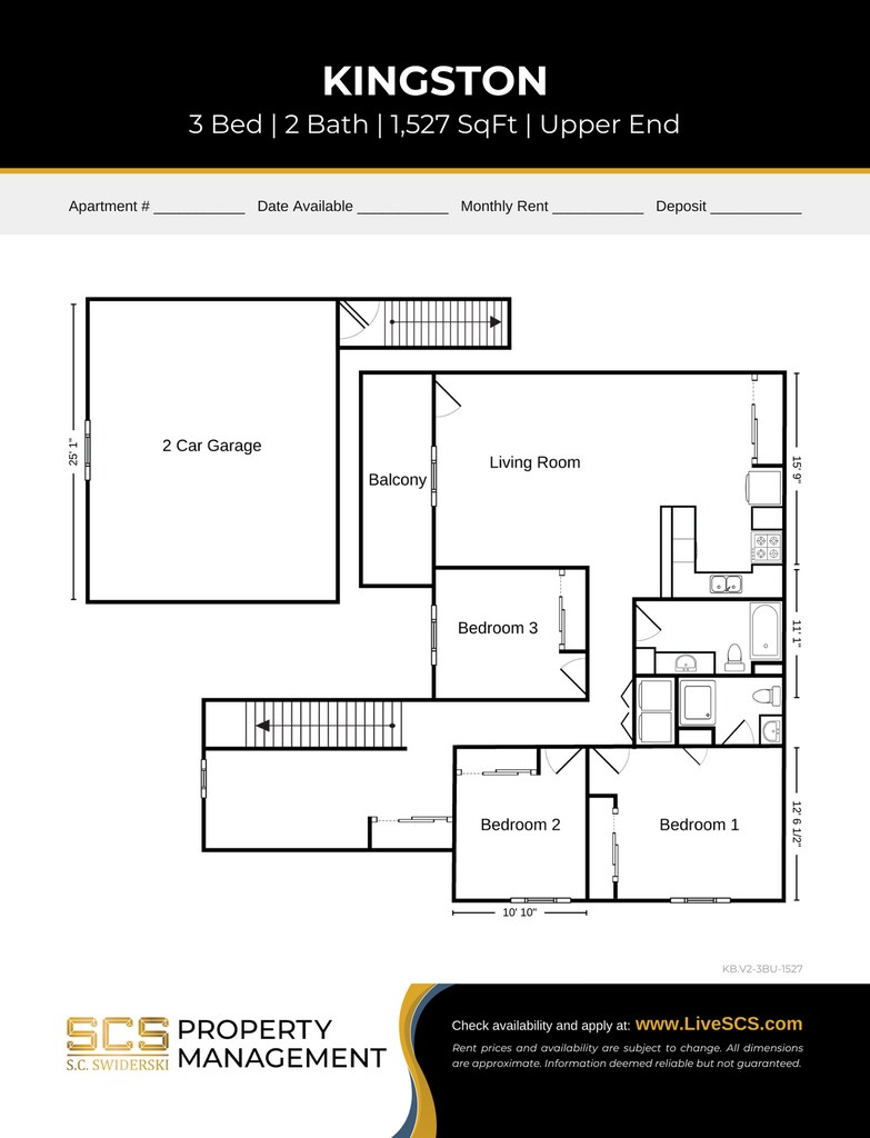 Modelo de apartamento: Kingston 3 BR Upper3 Dormitorios, 2 Baños, 1527 sq ftDisponible AhoraPlanosFotos![]()