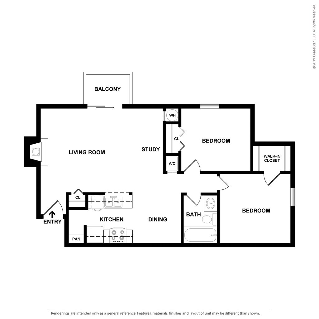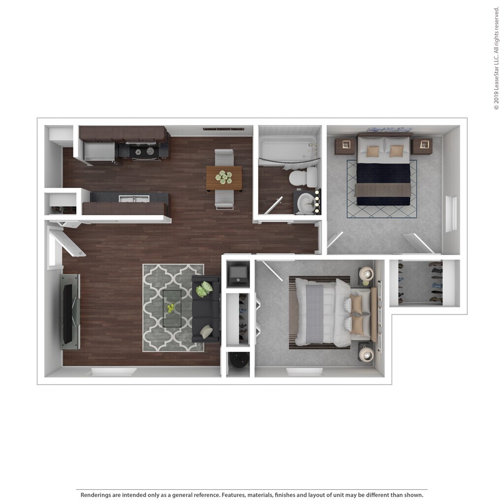 2 Dormitorios, 1 Baño, 753 pies²Disponible Dec 3Galería del Modelo
