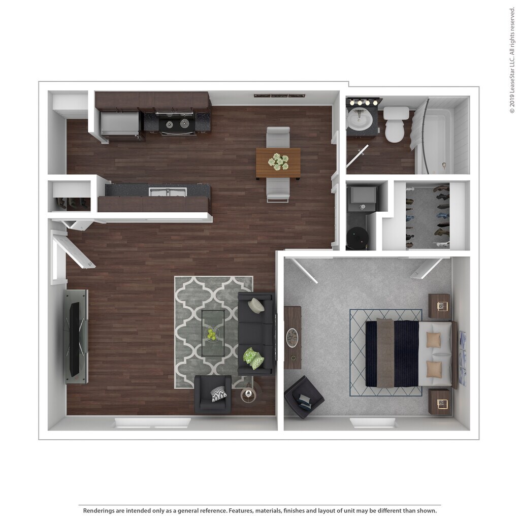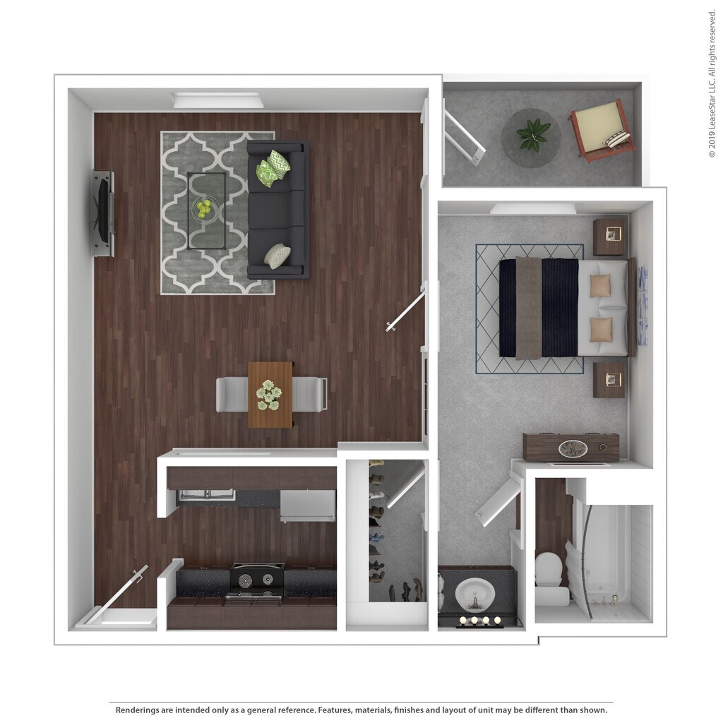 1 Dormitorio, 1 Baño, 671 pies²Disponible January 3, 2026Galería del Modelo