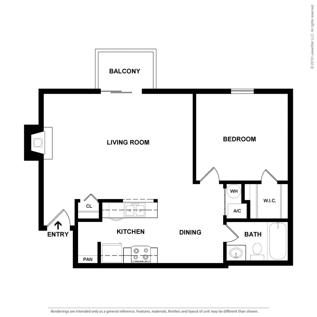 Lake James - Plano 3 Unidad de apartamento: 712Modelo de apartamento: Lake James1 Dormitorio, 1 Baño, 671 sq ftDisponible January 3, 2026Lake George