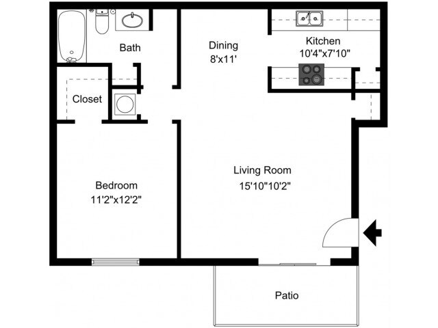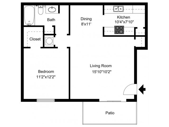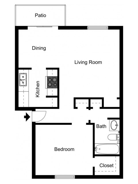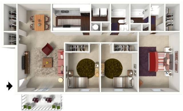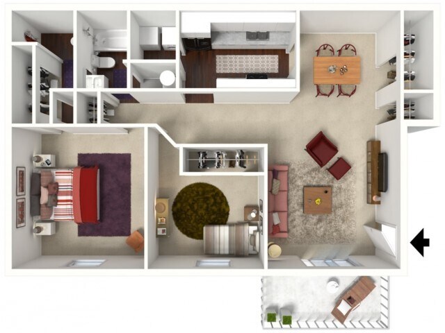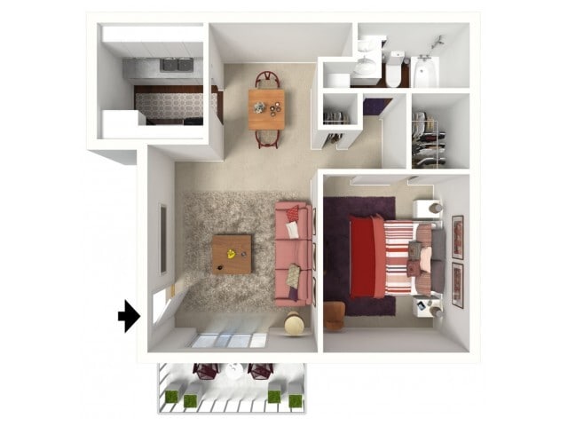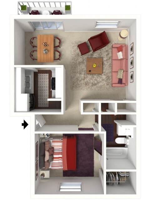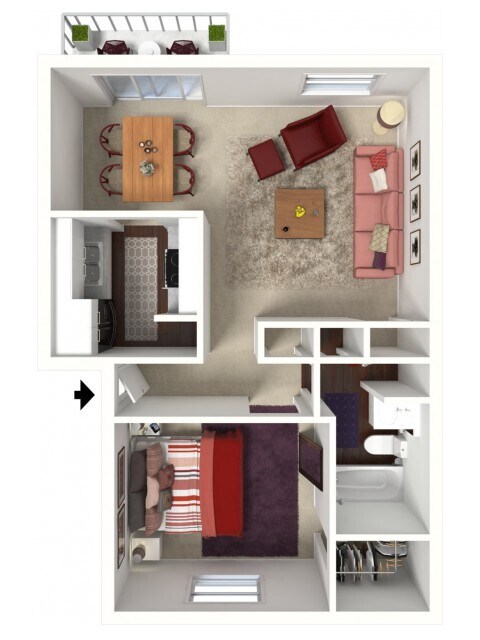 Modelo de apartamento: CypressDesde $7151 Dormitorio, 1 Baño, 512 sq ftDisponible December 2, 2025![]()