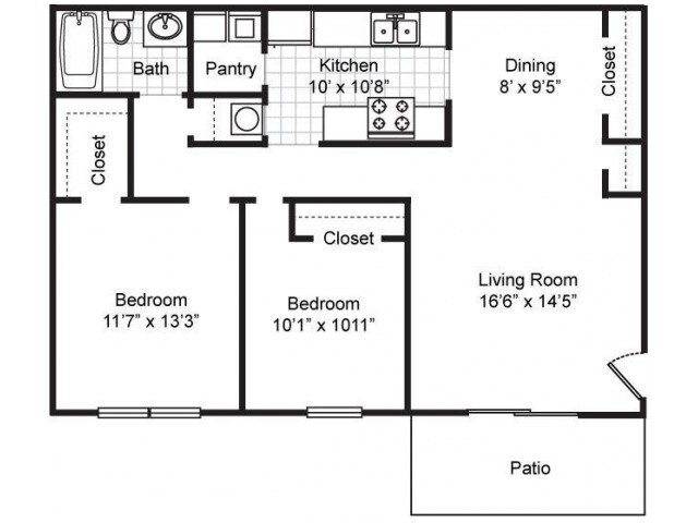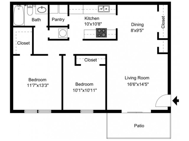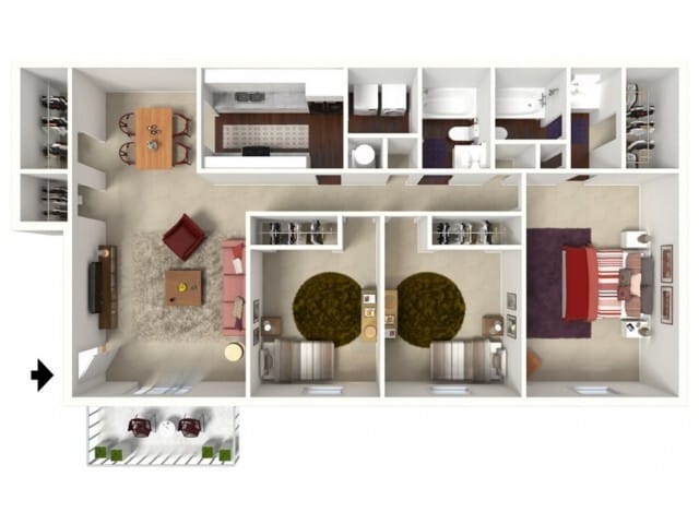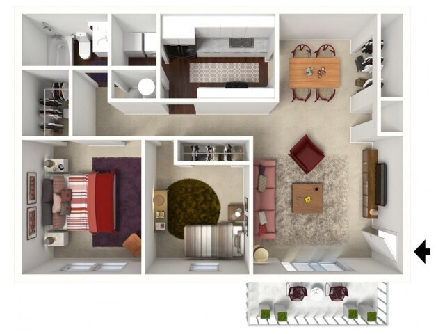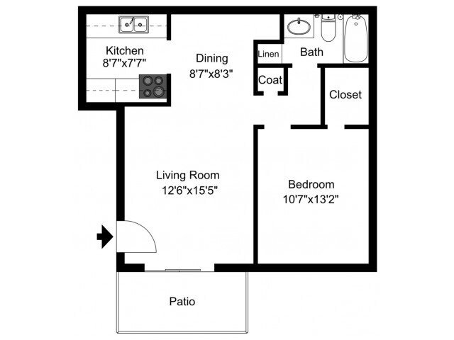 Modelo de apartamento: ChestnutDesde $8201 Dormitorio, 1 Baño, 649-682 sq ftDisponible November 25, 2025![]()
