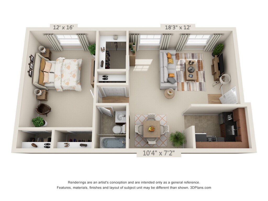 1 Dormitorio, 1 Baño, 760 pies²Disponible AhoraGalería del Modelo