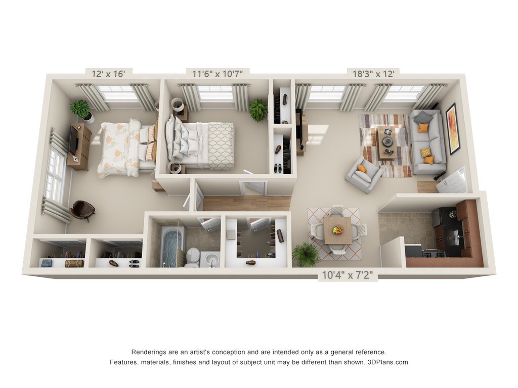 Modelo de apartamento: 2-Bedroom 1-BathroomDesde $1,9902 Dormitorios, 1 Baño, 950 sq ftDisponible December 1, 2025![]()
