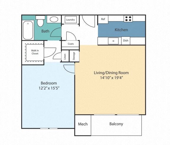 Modelo de apartamento: One Bedroom BasilLlame para Precios1 Dormitorio, 1 Baño, 806 sq ftNo Disponible![]()