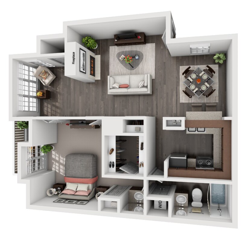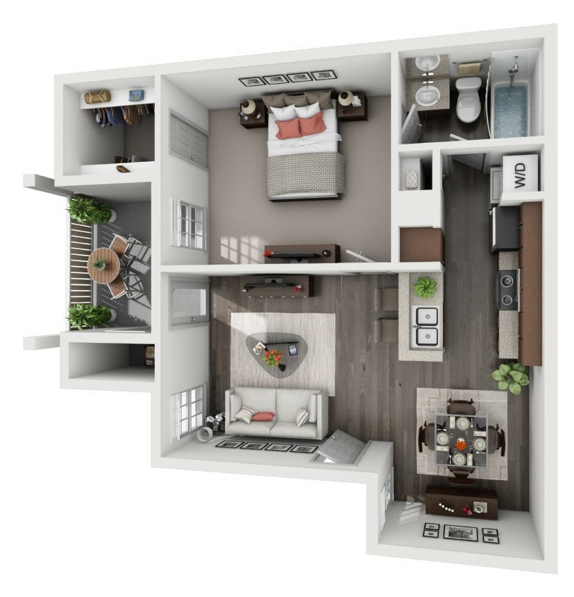 1 Dormitorio, 1 Baño, 722 pies²Disponible AhoraGalería del Modelo