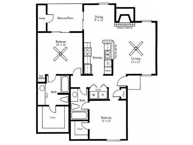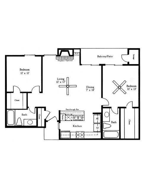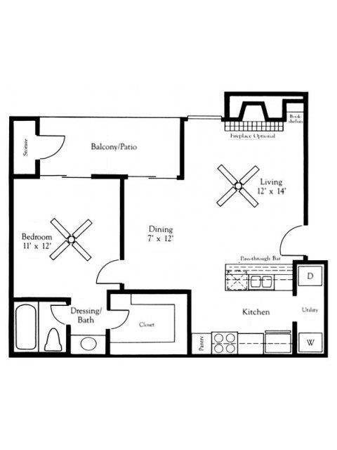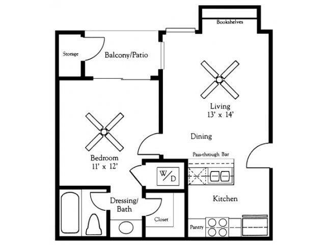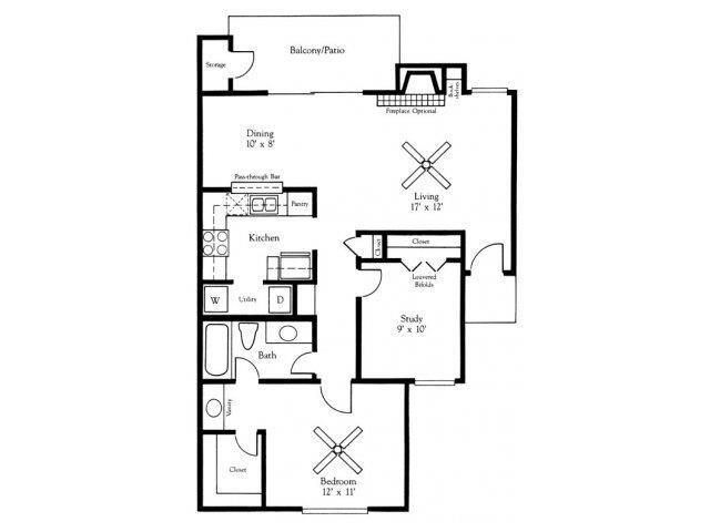 Modelo de apartamento: WillowDesde $8851 Dormitorio, 1 Baño, 650 sq ftDisponible Ahora![]()