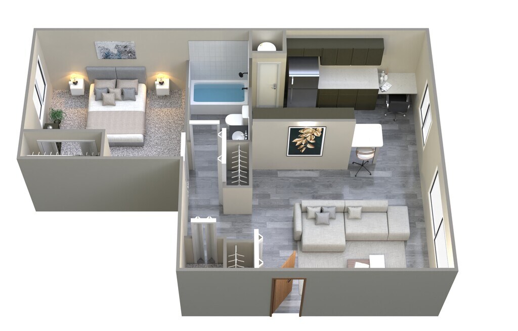 One Bedroom Renovated - Plano 1 Unidad de apartamento: 2912-AModelo de apartamento: One Bedroom Renovated$9951 Dormitorio, 1 Baño, 700 sq ftDisponible January 13, 2026One Bedroom