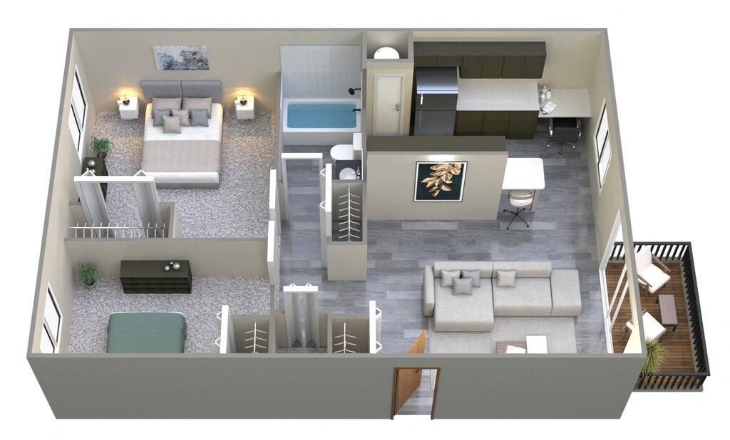 2 Dormitorios, 1 Baño, 800 pies²Disponible AhoraGalería del Modelo
