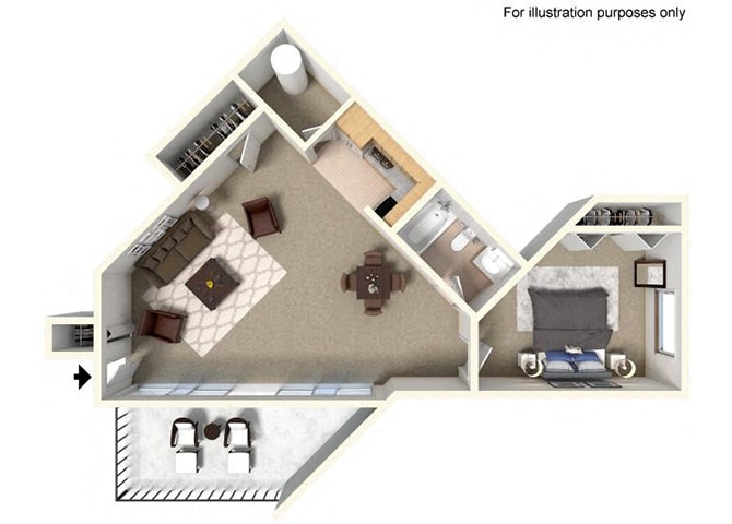 1 Dormitorio, 1 Baño, 620 pies²Disponible AhoraGalería del Modelo