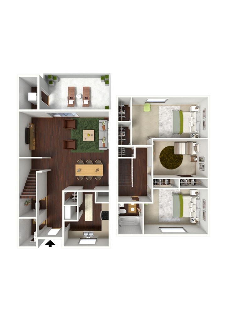 The Vineyard - Plano 1 Unidad de apartamento: BModelo de apartamento: The Vineyard2 Dormitorios, 1.5 Baños, 1152 sq ftDisponible Ahora3 Dormitorios