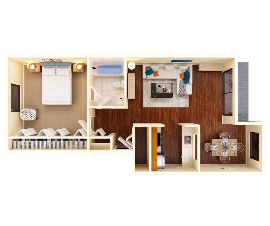 1 Dormitorio, 1 Baño, 769 pies²Disponible AhoraGalería del Modelo