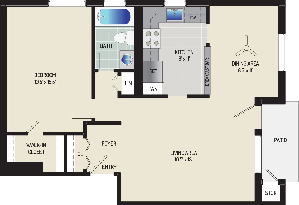 1 Bedroom + 1 Bath - Plano 15 ![]()