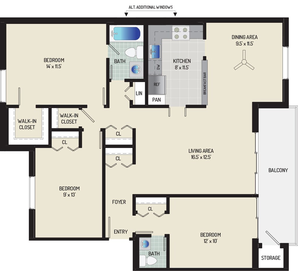 Modelo de apartamento: 3 Bedrooms + 1.5 BathsDesde $2,1483 Dormitorios, 1.5 Baños, 1170 sq ftNo Disponible![]()