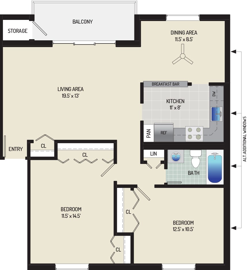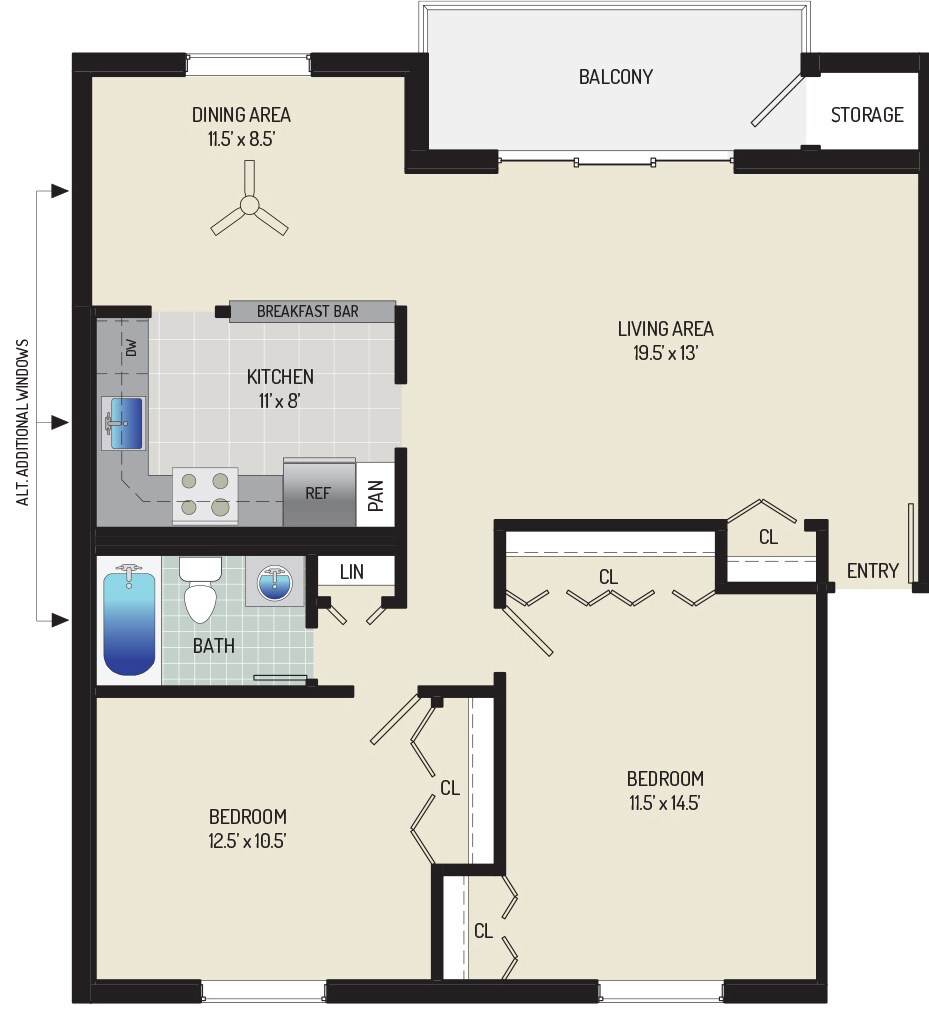 2 Bedrooms + 1 Bath - Plano 13 ![]()