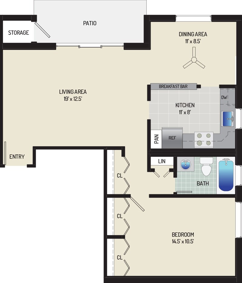 1 Bedroom + 1 Bath - Plano 14 ![]()