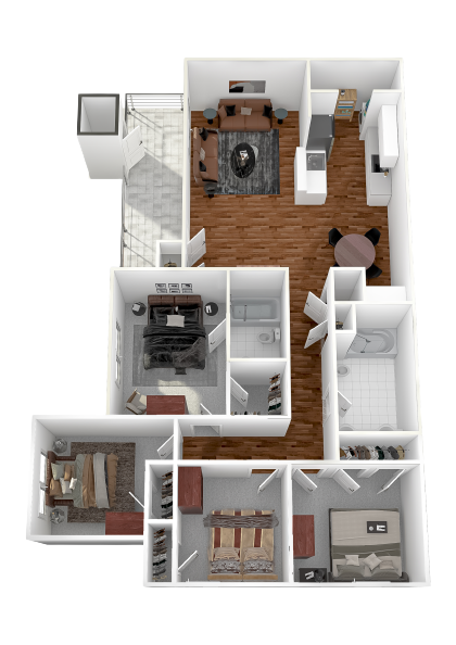 Modelo de apartamento: The TitanDesde $9103 Dormitorios, 2 Baños, 1068 sq ftDisponible Ahora![]()