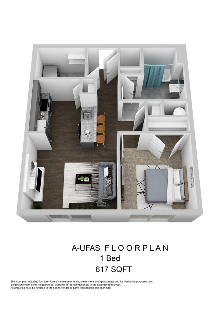 1 Dormitorio, 1 Baño, 617 pies²Galería del Modelo