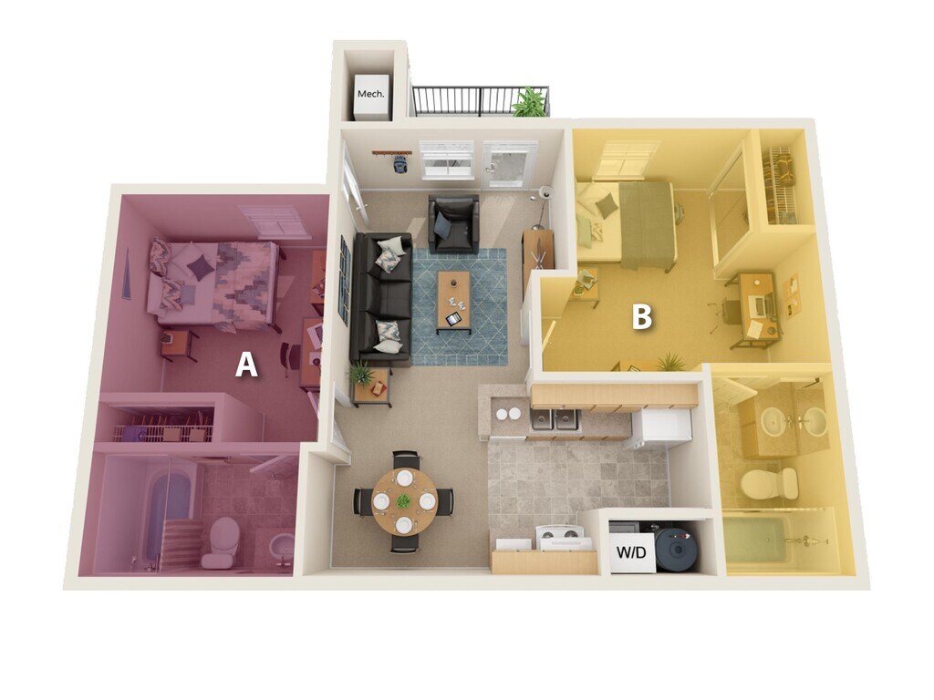 2 Dormitorios, 2 Baños, 846 pies²Galería del Modelo