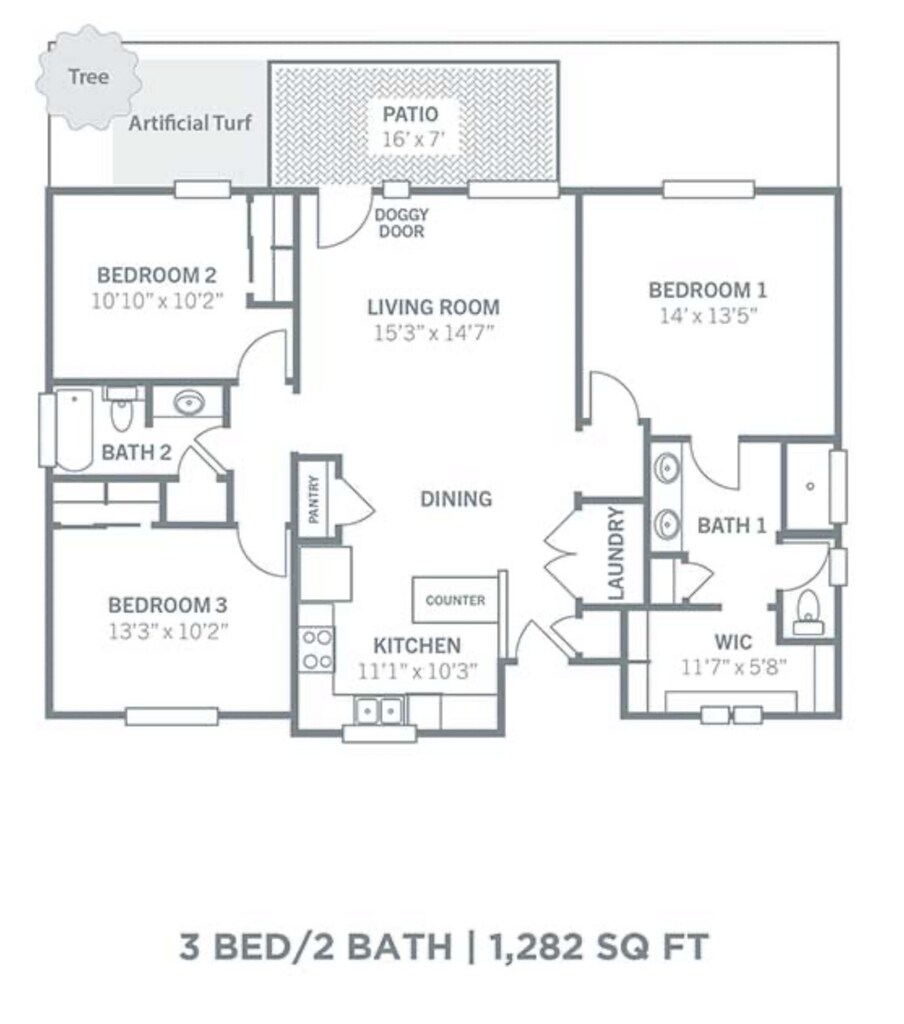 Modelo de apartamento: 3 Bedroom, 2 BathroomDesde $2,1663 Dormitorios, 2 Baños, 1282 sq ftDisponible AhoraPlanosFotos![]()