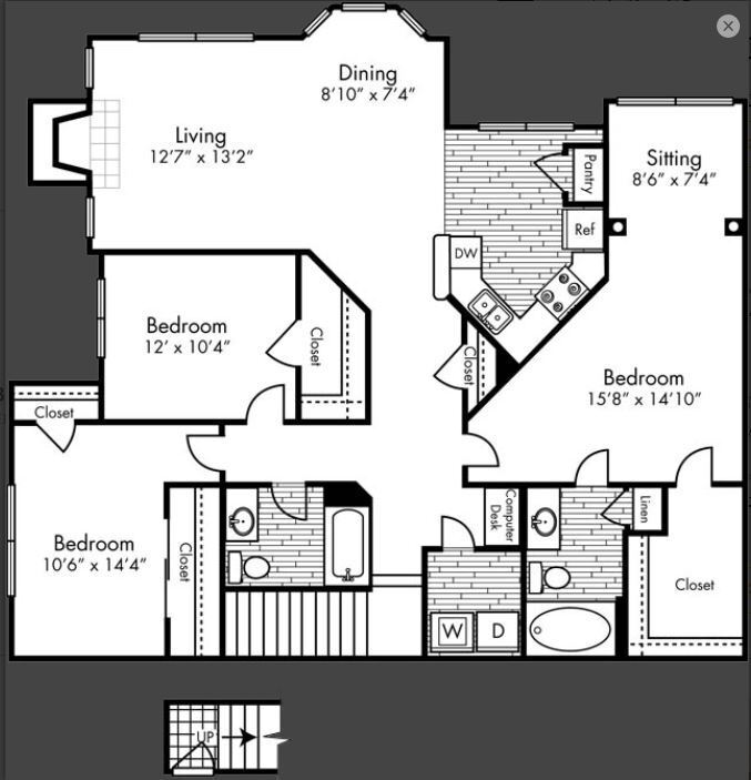 Modelo de apartamento: Large One Bed, One BathDesde $1,4751 Dormitorio, 1 Baño, 949 sq ftDisponible AhoraPlanosFotos![]()