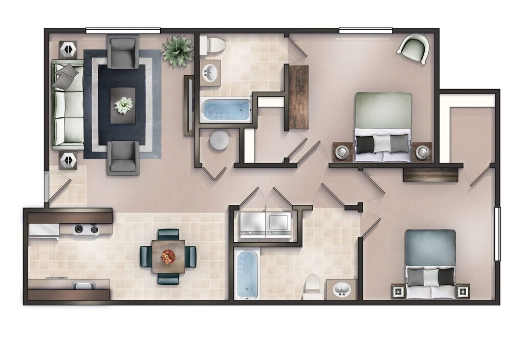 - Perfecta Plano de planta para compañeros de apartamento!