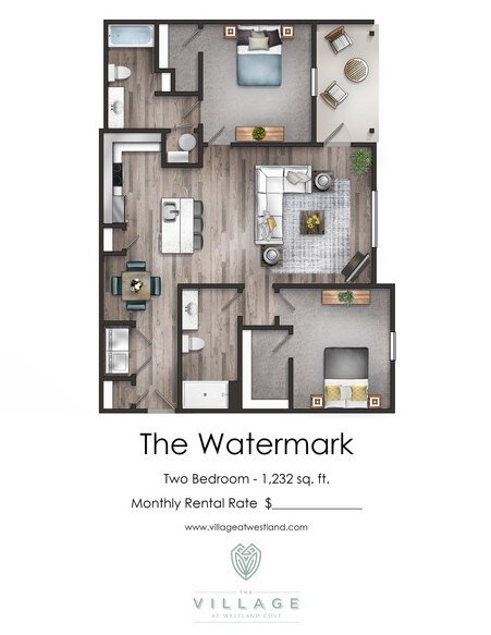 Modelo de apartamento: ShoreDesde $1,6512 Dormitorios, 2 Baños, 1248 sq ftDisponible Ahora![]()