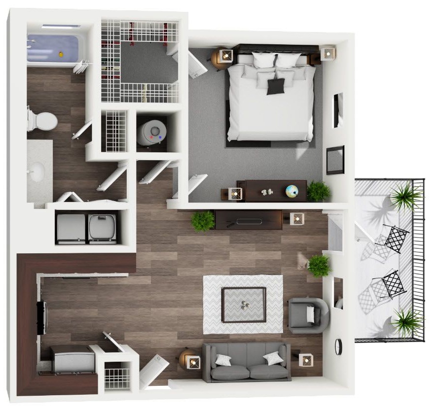 Modelo de apartamento: LeveeDesde $1,5731 Dormitorio, 1 Baño, 717 sq ftDisponible December 14, 2025![]()