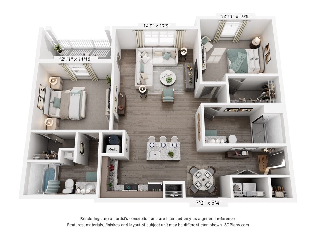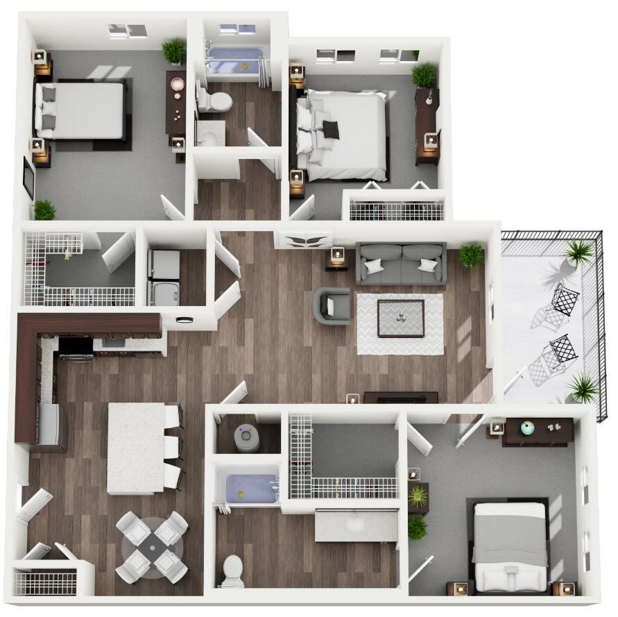 Lagoon - Plano 3 Unidad de apartamento: 231Modelo de apartamento: Lagoon$1,5831 Dormitorio, 1 Baño, 725 sq ftDisponible November 24, 2025Levee