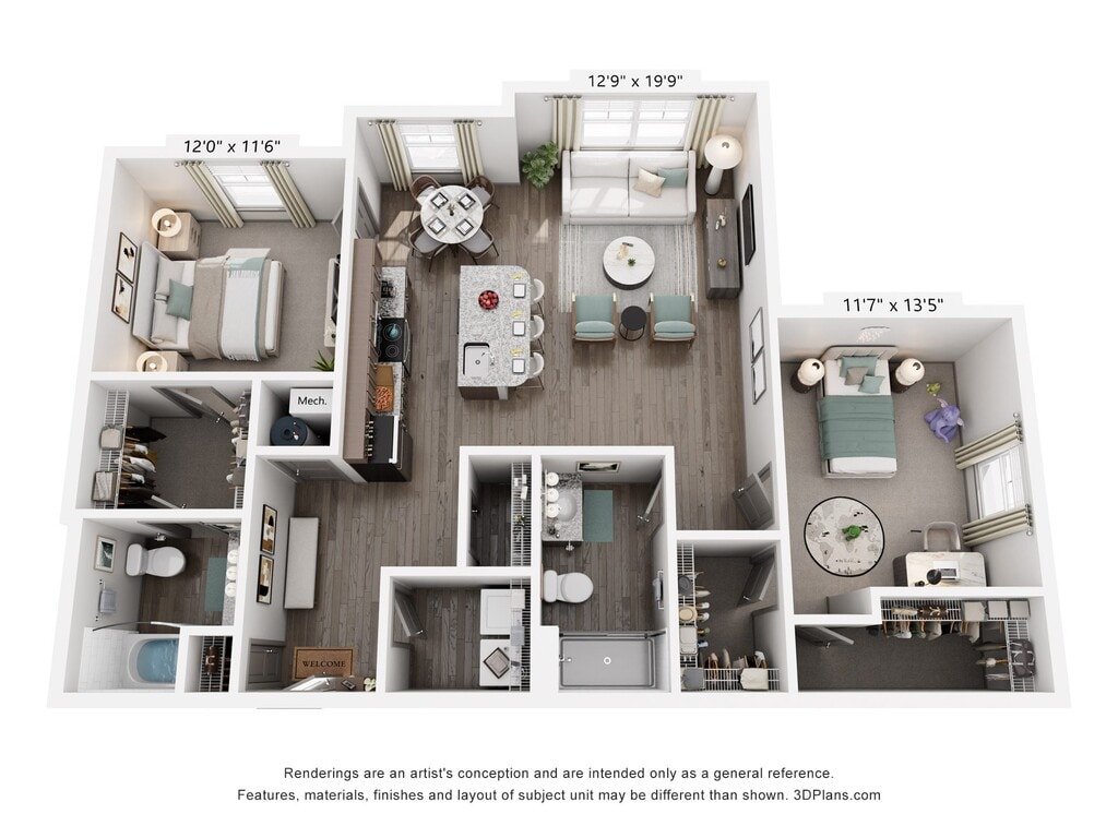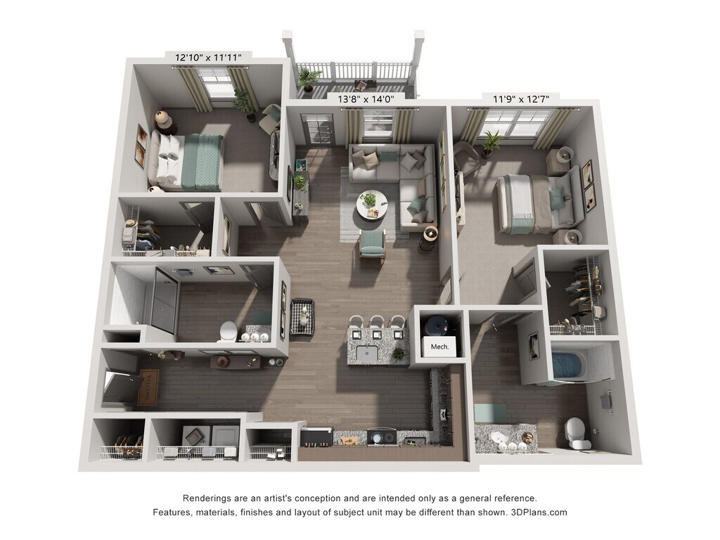 2 Dormitorios, 2 Baños, 1232 pies²Disponible AhoraGalería del Modelo