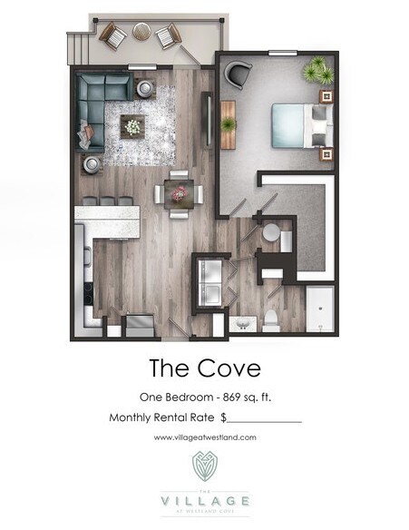 Modelo de apartamento: CoveLlame para Precios1 Dormitorio, 1 Baño, 869 sq ftNo Disponible![]()