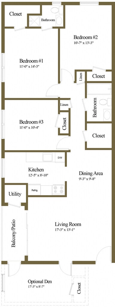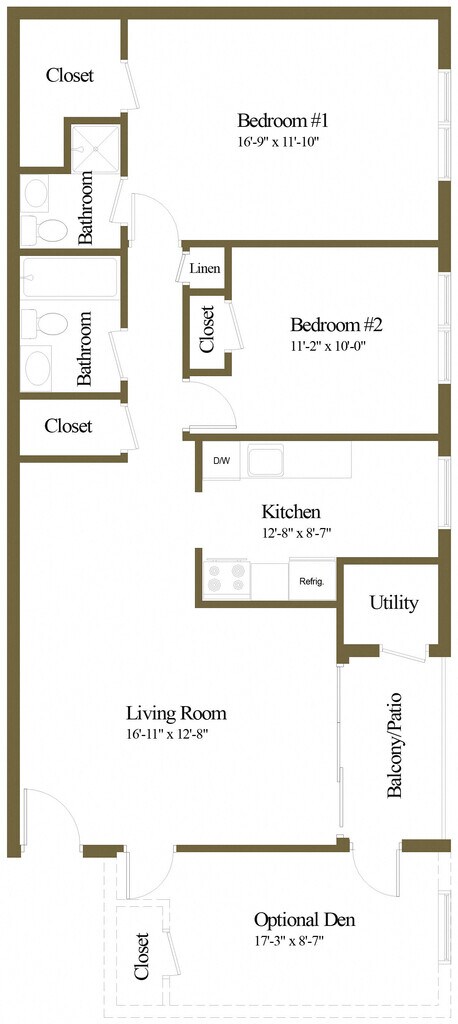 Modelo de apartamento: 2 Bedroom 1 BathDesde $1,2832 Dormitorios, 1 Baño, 788 sq ftDisponible Ahora![]()