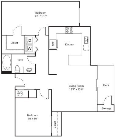 2 Dormitorios, 1 Baño, 917 pies²Disponible AhoraGalería del Modelo