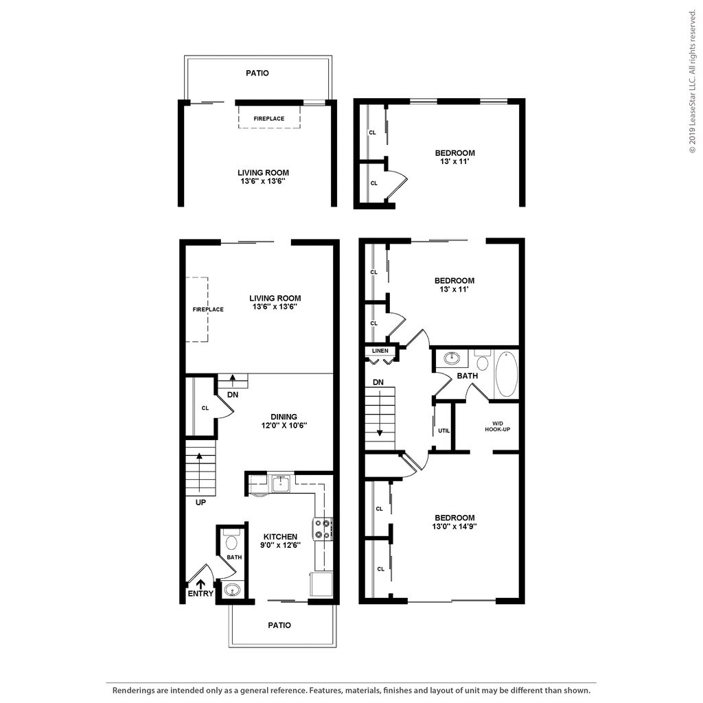 Hollendale - Plano 3 Unidad de apartamento: AModelo de apartamento: Hollendale$1,5642 Dormitorios, 1.5 Baños, 1151 sq ftDisponible AhoraFireside