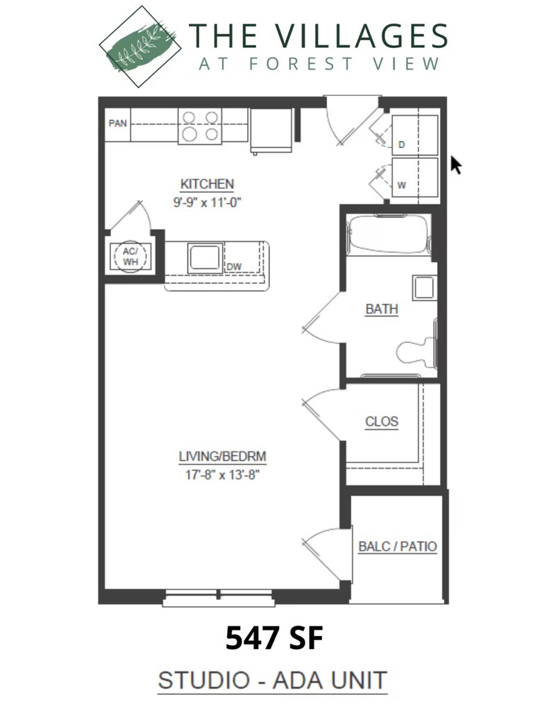 Villages at Forest View ofrece apartamentos de Estudio a 2 Dormitorios desde $1,299 con 547–1,180 pies cuadrados. Aquí está el precio actual y la disponibilidad: