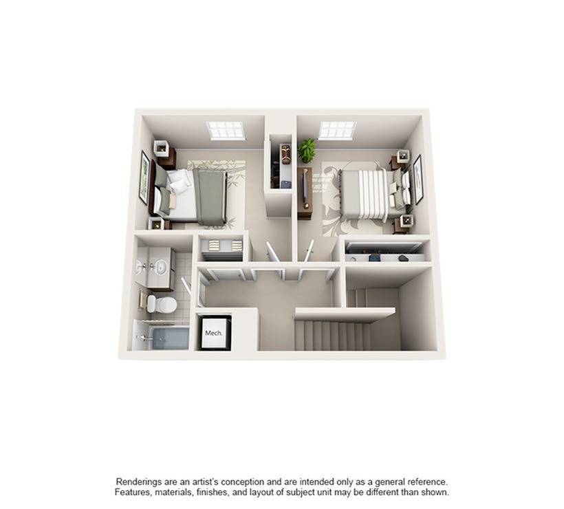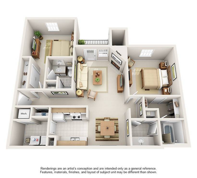 Modelo de apartamento: BDesde $1,2942 Dormitorios, 1 Baño, 843 sq ftDisponible Ahora![]()
