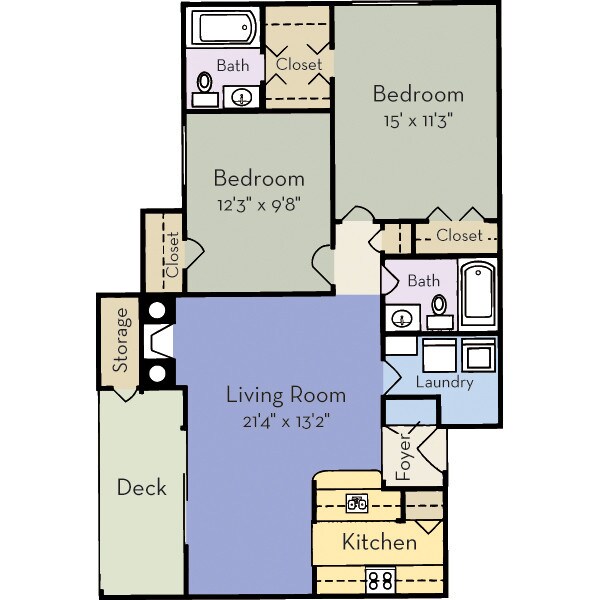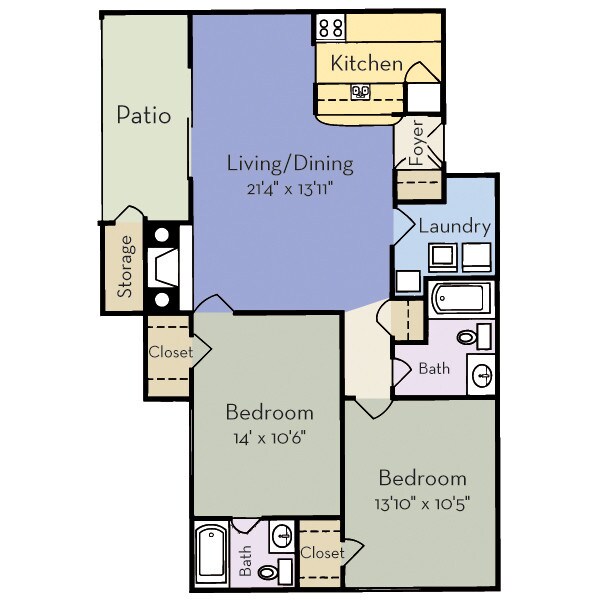 2 Dormitorios, 1 Baño, 950 pies²Disponible AhoraGalería del Modelo