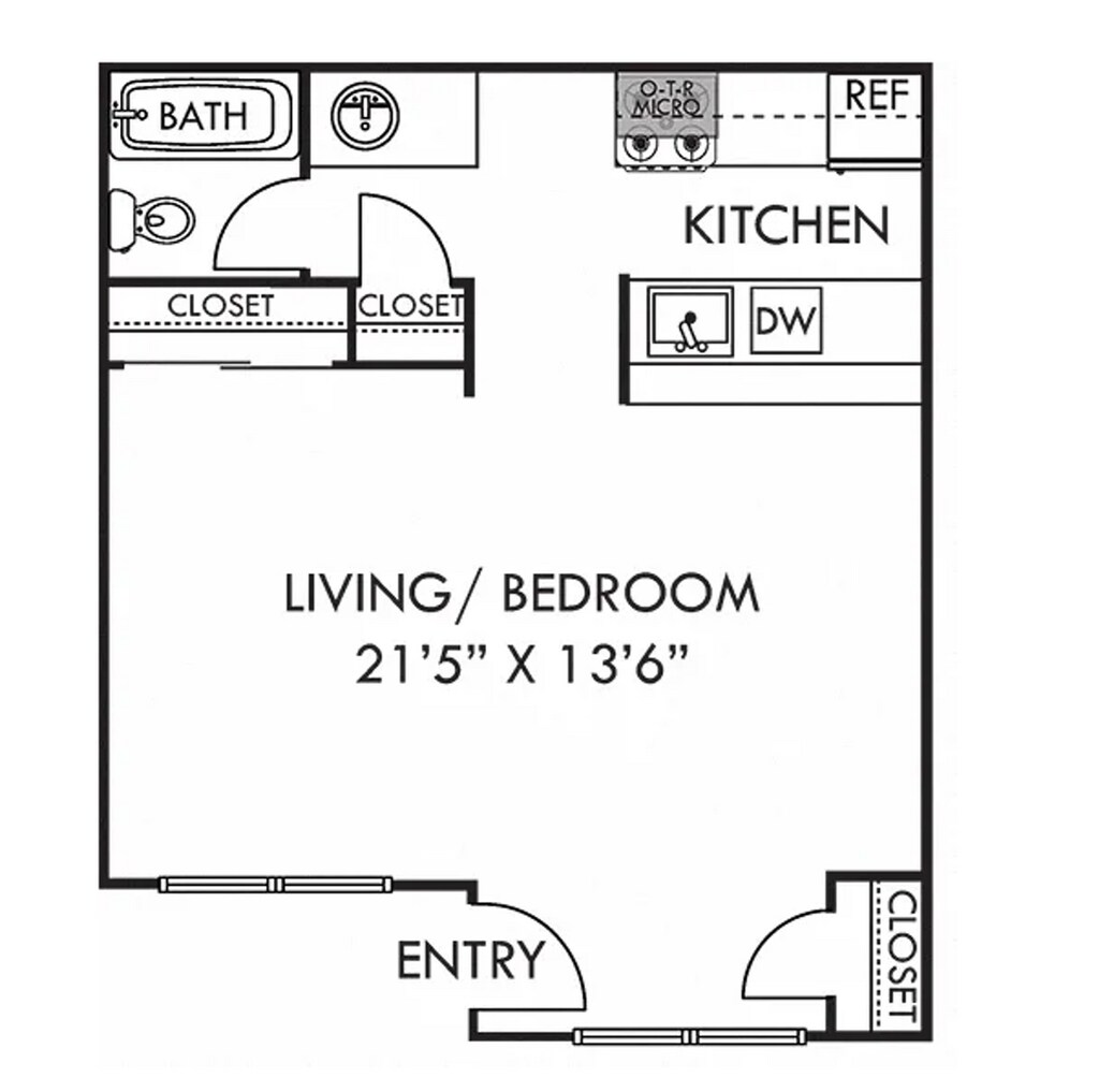 Estudio, 1 Baño, 531 pies²Disponible AhoraGalería del Modelo
