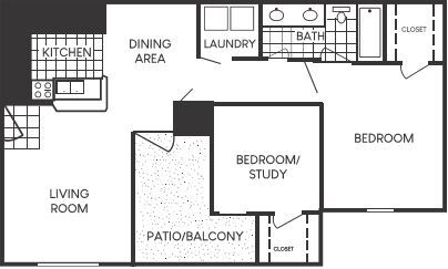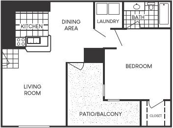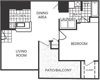 1 Dormitorio, 1 Baño, 733 pies²Disponible AhoraGalería del Modelo