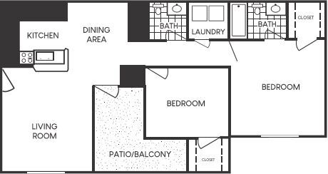 2 Dormitorios, 1 Baño, 892 pies²Disponible AhoraGalería del Modelo