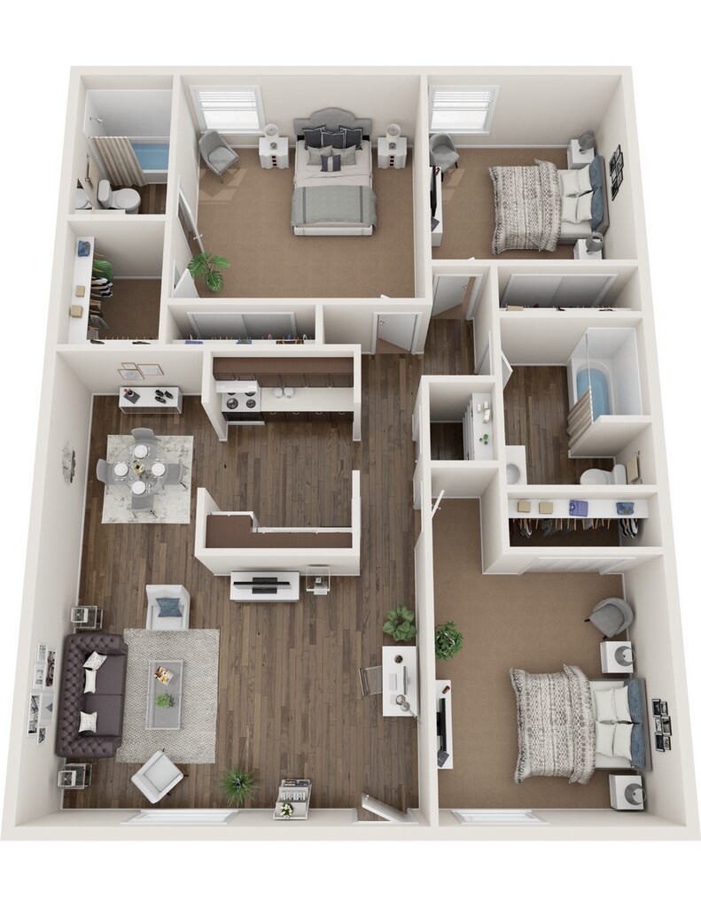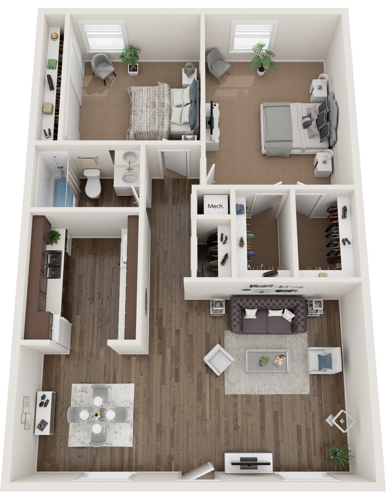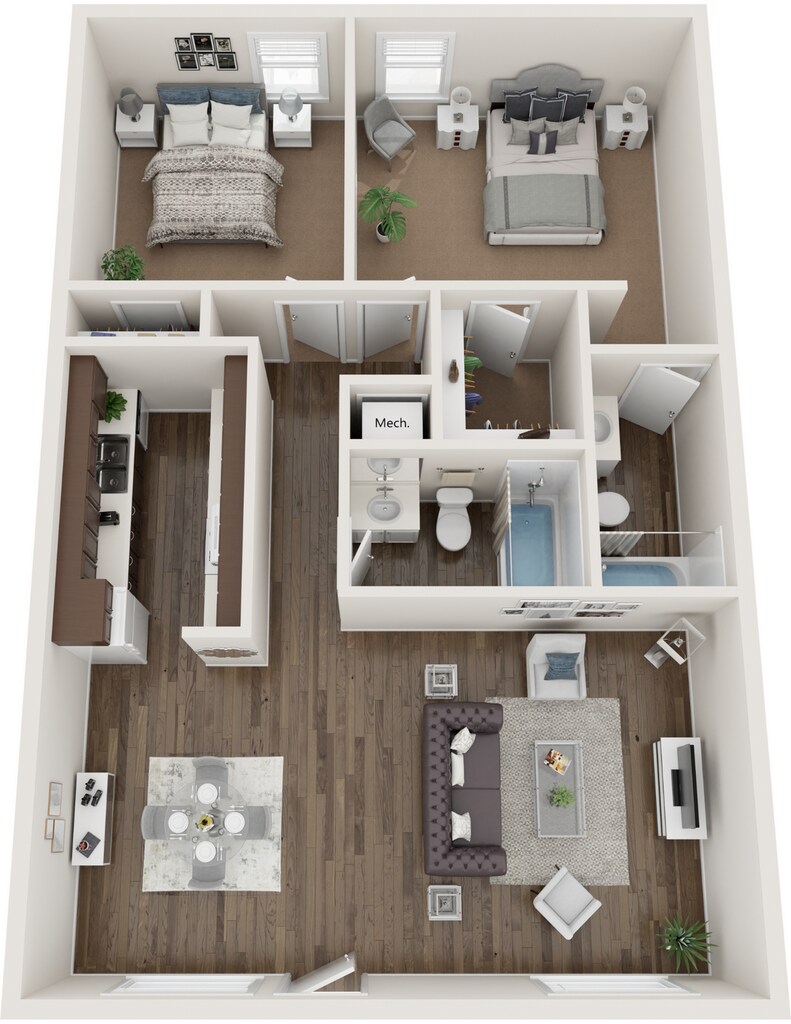 Modelo de apartamento: B1R$1,1732 Dormitorios, 2 Baños, 854 sq ftDisponible February 28, 2026![]()